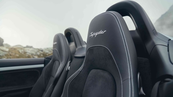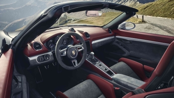 Voljeli bismo Vam reći: „Molimo Vas, uđite!” ali to Vas ne bi pripremilo za Vaš prvi kontakt sa 718 Spyder modelom. U ovaj automobil možete ući, kao ruka u rukavicu koja joj savršeno odgovara. Sve se uklapa. Sve je prilagođeno vozaču. Uglavnom zbog ergonomije sportskog automobila, usavršavane tokom decenija. Uzdignuta centralna konzola osigurava kratko rastojanje od tipičnog malog GT sportskog volana do skraćene ručice mjenjača ili PDK birača stepena prijenosa i nazad. Petlje na vratima naglašavaju puristički sportski enterijer. Također se možete odreći audio i komunikacijskog sistema, na zahtjev – ako ne želite apsolutno ništa što Vas može odvratiti od čistog iskustva vožnje.