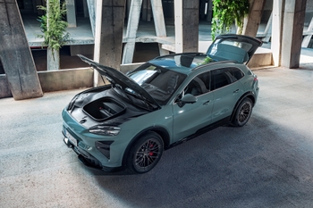 Le nouveau Cayenne Electric est 55 millimètres plus long que le modèle à moteur thermique. Le nouveau VUS mesure 4 985 mm de long, 1 980 mm de large et 1 674 mm de haut. La différence est la plus importante au niveau de l'empattement (3 023 mm), où une augmentation de près de 13 cm signifie plus d'espace pour les jambes à l'arrière et plus de confort que jamais pour les passagers arrière. Le système de sièges arrière est réglable électriquement de série et offre des options de réglage flexibles, d’une position confortable à une position favorisant le coffre. Le volume du coffre est de 781 à 1 588 litres, auxquels s'ajoutent les 90 litres du coffre avant. La polyvalence du nouveau véhicule est également soulignée par sa capacité de remorquage pouvant atteindre 3,5 tonnes, en fonction de l'équipement.