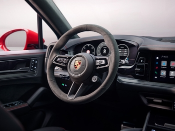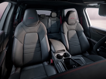 Le Cayenne GTS est équipé de série d’un volant sport GT chauffant, et l’ensemble de l’habitacle est agrémenté d’éléments en Race-Tex de haute qualité. La garniture de toit, les accoudoirs et les panneaux de porte sont recouverts de tissu en similisuède, tout comme les panneaux centraux des sièges sport réglables en huit sens. Les renforts latéraux ont été rehaussés pour offrir encore plus de soutien dans les virages. Porsche offre également deux autres ensembles intérieurs spécifiques au GTS pour un look plus personnalisé : rouge carmin et gris ardoise néo.