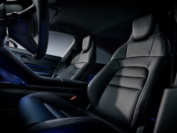 Porsche a également ajouté ce qui suit à la liste d’équipements de série du Taycan 4S Black Edition : Système d’aide au changement de voie, vue panoramique à 360 degrés avec aide au stationnement actif, roues de 21 po avec chapeaux de roue ornés de l’écusson Porsche en couleur, phares à matrice de DEL haute définition, projecteurs de porte à DEL avec logo Porsche, sièges confort à l’avant (incluant 14 réglages électriques et fonction de mémoire) avec écusson Porsche sur les appuie-tête avant, système ambiophonique BOSE® comprenant Dolby Atmos, Electric Sport Sound, Ensemble rangement et garnitures en cuir noir lisse. Le modèle comporte également un emblème exclusif dans la console centrale avec la désignation « Black Edition ».