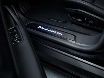 Des garnitures noires à l’extérieur et à l’intérieur soulignent l’allure sportive et élégante de la version Black Edition. Les éléments de l’Ensemble Sport Design, les contours de vitres latérales et la désignation du modèle à l’arrière sont offerts en noir très lustré. Les rétroviseurs extérieurs en noir très lustré combinés à d’autres finis de peinture extérieure sont offerts exclusivement avec la version Black Edition. La bande lumineuse arrière avec le logo Porsche noir éclairé est également offerte de série. L’Ensemble accent intérieur noir, l’Ensemble rangement et les protecteurs de seuil de porte illuminés en aluminium au fini brossé noir sont aussi inclus.