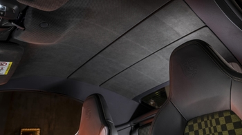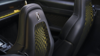 The highlight of the interior is the iconic Pasha fabric pattern in black/Olive Neo. The graphic design of the fabric is reminiscent of a moving checkred flag. Different-sized, cleverly arranged rectangles create a kind of movement in the pattern. Instead of jacquard velour as in the past, the 911 Spirit 70 integrates a textile with flock yarns. This gives the fabric an even sportier character, an improved feel and more comfort, especially on longer journeys.