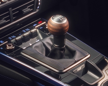 L'exclusivité de la 911 Carrera T est encore renforcée par les packs design Carrera T pour l'extérieur et l'intérieur. Ceux-ci sont disponibles dans la couleur Porsche Gentian Blue classique pour créer un contraste saisissant. À l'extérieur de la voiture, les inserts du couvercle de coffre arrière, les décalcomanies Carrera T sur les couvercles avant et arrière et les portes, les autocollants MT et les jantes en alliage léger avec une face avant polie brillante sont de cette couleur. Les coques supérieures des rétroviseurs extérieurs sont noires. Des surpiqûres contrastantes en Gentian Blue, au lieu des surpiqûres noires standard, rehaussent l'intérieur et les sièges sont également dotés de bandes contrastantes Gentian Blue. La même couleur orne les ceintures de sécurité, la garniture de la console centrale et les panneaux de porte, ainsi que les inserts contrastants et les logos 911 brodés sur les appuie-tête.