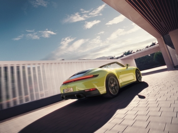 The heart of the T-Hybrid powertrain is a newly developed 3.6-litre boxer engine. Thanks to the high-voltage system, the compressor for the air conditioning system can be powered electrically, so there is no need for a belt drive, making the engine more compact. This provides for the room above the flat-six engine to house the pulse inverter and DC-DC converter. A bore increase to 97 millimeters and a stroke enlarged to 81 millimeters raise the displacement compared to previous 911 Carrera GTS models by 0.6 litres. The new engine features the camshaft adjustment system - VarioCam - and a valve control using roller rocker arms. It can retain the ideal combination of fuel and air (Lambda = 1) over the full range of engine speed.