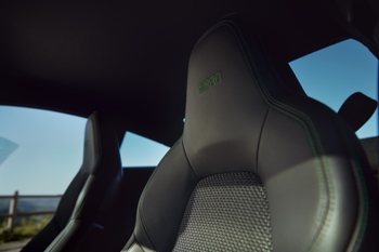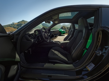The car’s sportiness is underscored in the interior by the standard four-way Sports Seats Plus. Decorative trim in matte black and decorative inlays in high-gloss black round off the T interior. Customers seeking even more distinctiveness can choose the optional Carrera T interior package. In this case, they receive additional safety belts in Slate Grey or Lizard Green contrasting colours. The same goes for the decorative stitching, the 911 logo embossed in the headrests, and the stripes down the seat centres. The floor mats also offer the logo and stitching in Lizard Green or Slate Grey contrasting colours as an option.
