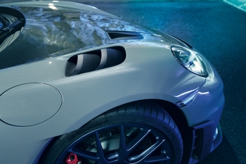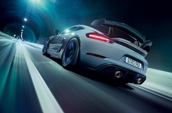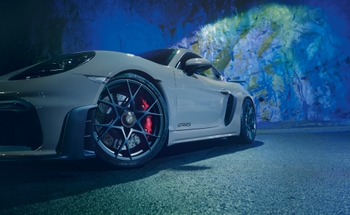 À l’extérieur, la voiture se distingue par son nouvel aileron arrière fixe en col-de-cygne, avec supports en aluminium. Cet aileron ultra efficace adopte un principe emprunté à la Porsche 911 RSR GT de course et inauguré sur une Porsche 911 GT3 de production. En mode Performance réservé à l’usage sur circuit, la GT4 RS bénéficie d’une déportance d’environ 25 % supérieure à celle de la GT4 grâce à sa caisse 30 mm plus basse que celle de la 718 Cayman, des aérateurs distinctifs sur les passages de roues avant, un carénage de sous-carrosserie à aérodynamique optimisée relié au diffuseur arrière, un diffuseur avant réglable et un nouveau déflecteur avant à profil bas doté d’ailettes latérales.