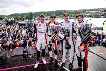 Nach 24 Stunden, 533 Runden und 26 Boxenstops ist es geschafft. Mit Platz 2 in der PRO-AM Wertung und Platz 23 over all ist der angestrebte Podestplatz Tatsache. Selbst der Sieg war in Reichweite, denn der Abstand zum Führenden lag bei der Zieldurchfahrt bei lediglich 14 Sekunden. Und das nach 24 Stunden! Doch auch mit diesem sensationellen 2. Platz dürfen wir mehr als zufrieden sein, denn damit konnte die Führung in der PRO-AM Wertung der GT World Challenge weiter ausgebaut werden.