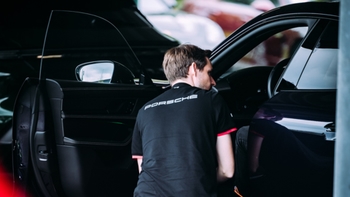 Und für alle jene, die sich speziell für die technischen Innovationen des Taycan interessierten, gab es im Werkstattbereich eine Station, an der ein Hochvolttechniker an einer ausgebauten Batterie interessante Details erläuterte.