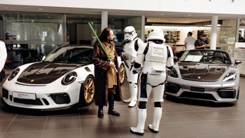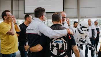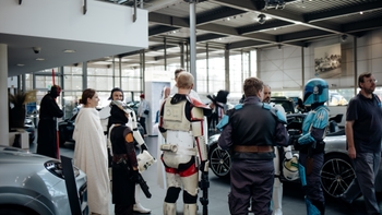 Selbstverständlich nutzten unsere Gäste auch immer wieder die Möglichkeit, unsere sportlichen Neuzugänge – den ersten vollelektrischen Macan und den neuen 911 – zu bewundern und spannende Techtalks zu führen. Doch nicht nur diese faszinierenden Sportwagen sorgten für Gänsehautmomente. Auch die Star Wars Fans Nürnberg e. V. (kurz SWFN) sorgten für beste Stimmung unter den Besuchern und rundeten das abwechslungsreiche Rahmenprogramm perfekt ab. Ob beim interaktiven Kinderschminken, bei rasanten Runden auf der Carrera-Bahn oder beim Aufnehmen kreativer Selfies in unserer Fotobox: Nach so vielen tollen Erlebnissen verließen sowohl die kleinen als auch die großen Kurvenfans unser Porsche Zentrum mit einem breiten Grinsen.