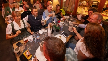 Alternativ wurde der luxuriöse Hotel-Spa genossen oder das Hans-Peter Porsche Traumwerk im Berchtesgadener Land besucht. Am Abend wartete dann ein echtes Highlight auf alle: der Hüttenabend bei Rosi’s Sonnbergstuben mit leckeren, zünftigen Speisen und Getränken und einem spontanen Liveauftritt von Rosi.
