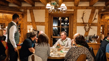 Ein kurzer Zwischenstopp bot die Gelegenheit, Eindrücke auszutauschen und den Moment zu genießen, bevor wir unser Ziel erreichten: die Wanderhütte Sattelei. Dort erwartete uns ein Fondue, das perfekt zur warmen, urigen Atmosphäre der Hütte passte. Genau der richtige Rahmen, um den Tag entspannt ausklingen zu lassen, Gespräche zu vertiefen und das gemeinsame Erlebnis noch einmal Revue passieren zu lassen.