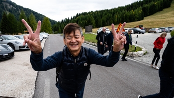 Aber schalten wir einen Gang zurück und beginnen am Anfang. Am Mittwoch starteten die 50 Teilnehmer ihren Tag mit einem gemeinsamen Frühstück im ikonischen Porsche Museum. Danach ging es auf den Fahrersitz: Das Ziel war das malerische Hotel Armentarola in Alta Badia. Nach einer herzlichen Begrüßung und einem kleinen Empfang mit Fingerfood und Getränken, bot sich ab 18.30 Uhr bei einem Aperitif die perfekte Gelegenheit, Walter Röhrl persönlich kennenzulernen und in geselliger Runde Benzingespräche zu führen. Ein leckeres Willkommensdinner rundete den ersten Tag ab.