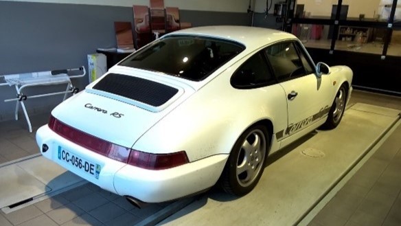Après 160 000 km de service, cette 964 RS a été restaurée au niveau du châssis. Les périphériques du moteur, tels que les tuyauteries, ont été remplacés pour fiabiliser la voiture. La peinture a été intégralement refaite dans sa couleur 'Blanc Grand Prix'.