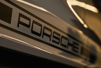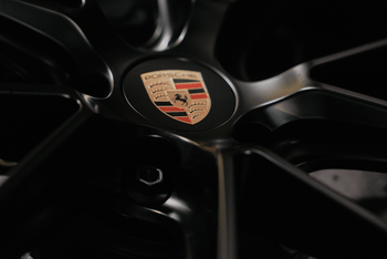 - Dombornyomott Porsche pajzs a középkonzol könyöklőin