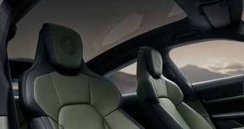 In addition to the ten leather and 15 seam colours that Porsche offers as standard for the Taycan, “Leather to Sample” is now also available for this model series via the Sonderwunsch programme. This further customisation option celebrates its premiere with the Taycan Turbo S Celestial Jade. The interior specialists from the Porsche Exclusive Manufaktur have combined the standard colour Slate Grey with the “Leather to Sample” option Englishgreen. This elegant, dark green can be found in the doors, the centre console and the front and rear seats. In addition to Englishgreen, the “Leather to Sample” programme includes around 150 colours.