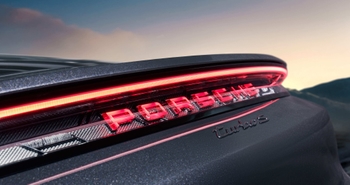 Chromaflair pigments contain extremely thin “flakes” that appear to shift in colour depending on how you look at them. These flakes consist of an opaque, reflective core layer of aluminium, which is then surrounded by a glass-like layer. This transparent layer looks different colours depending on the thickness. All together the flakes are only 1 µm thick. By comparison, human hair is 50 times thicker than this. This gradient paint isn’t just found on the body of the Sonderwunsch Taycan: the rear model designation, the “Electric” logo on the side and the key fob cover also have this impressive finish.