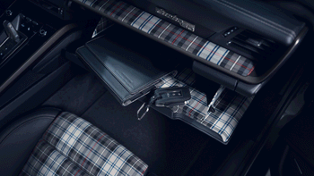 Fjölmargir áhersluþættir í Turbonite undirstrika Porsche Turbo tilfinninguna: frá látlausum skrautsaumi – þar með talið á mælaborði, gólfmottum og hurðinni – til hurðalista með skrautinleggjum úr svörtu leðri, til PDK gírstangar og sætisóla.