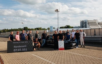“Porsche” izstrādes pilots Larss Kerns trases apli veica ātrāk – 1,27 minūtēs un 87 sekundes simtdaļās – nekā jebkurš cits braucējs ar koplietošanas satiksmei apstiprinātu elektrisko automobili.