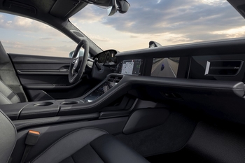 “GT” sporta stūre ir pārklāta ar melnu “Race-Tex” apdari, un tai ir centra atzīme. “Taycan Turbo GT” ir aprīkots ar “Taycan Turbo S” modeļa “Sport Chrono” pakotni.