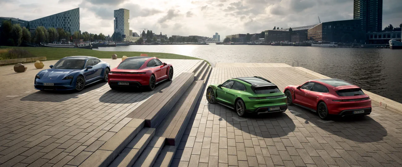 Vår helt elektriska sportbil Taycan. Designen känns igen från våra mest framgångsrika racingbilar, många funktioner är hämtade från banan, fokuset på dig som förare är som alltid prioriterat.