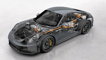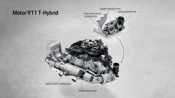 »Pri modelu 911 s tehnologijo T-Hybrid naš cilj ni bil popolnoma električno gibanje, kot je značilno za priključne hibride. Nismo želeli, da bi bila baterija prevelika ali pretežka,« pojasnjuje Hofstetter in izpostavlja njeno zmogljivost, ki je 1,9 kWh. Namesto tega sistem izkorišča prednost električno podprtega turbopolnilnika, ki rekuperira energijo iz izpušnih plinov. Elektromotor v turbopolnilniku tako deluje tudi kot generator in lahko proizvede električno moč do 11 kW (15 KM).