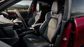 Za nadaljevanje športnega videza v notranjosti je novi Macan GTS opremljen z razširjenim oblazinjenjem iz materiala Race-Tex, ki ga dopolnjujejo elementi iz gladkega črnega usnja. Material Race-Tex najdemo tudi na ogrevanem večfunkcijskem športnem volanu GT, na naslonih sredinske konzole in vratnih oblog ter na armaturni plošči. Osrednji deli adaptivnih športnih sedežev z 18-smerno nastavitvijo so prav tako oblečeni v Race-Tex, medtem ko so bočni deli sedežev in nasloni za glavo obdelani z gladkim usnjem.