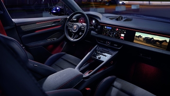 Tema GTS se nadaljuje tudi v digitalnem kokpitu. Barva zunanjosti vozila je prikazana v tridimenzionalni vizualizaciji na osrednjem zaslonu, medtem ko instrumentna plošča nosi značilen napis »GTS«. Številne funkcije serijskega paketa Sport Chrono, kot so merjenje časov krogov, beleženje telemetrije in analiza posameznih odsekov, so dostopne prek ustrezne aplikacije na osrednjem zaslonu.