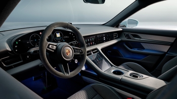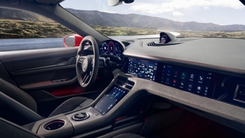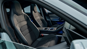 Veliko materialov v notranjosti Taycana GTS je prevzetih iz modela Taycan Turbo GT. Serijska oprema vključuje izdatno uporabo tkanine Race-Tex in elemente v gladkem črnem usnju. Poleg tega modeli Taycan GTS ponujajo prilagodljive športne sedeže Plus (z električno nastavitvijo v 18 smereh), ogrevan večfunkcijski športni volan GT s stikalom za izbiro načina vožnje, paket Sport Chrono, ki vključuje funkcijo push-to-pass ter način Track. Večfunkcijski volan GT, znan iz modela Taycan Turbo GT, lahko opcijsko oblečete v tkanino Race-Tex. Volan vključuje dve stikali za izbiro načina vožnje ter obvolanske ročice za funkcijo push-to-pass in rekuperacijo energije. Opcijski notranji paket GTS, poleg karminsko rdeče, zdaj ponuja tudi odtenek skrilnato sivo neo. Logotip Taycan GTS krasi armaturno ploščo ter se pojavlja na merilniku moči in zagonski grafiki. Serijsko je vgrajen tudi sistem prostorskega ozvočenja BOSE®.