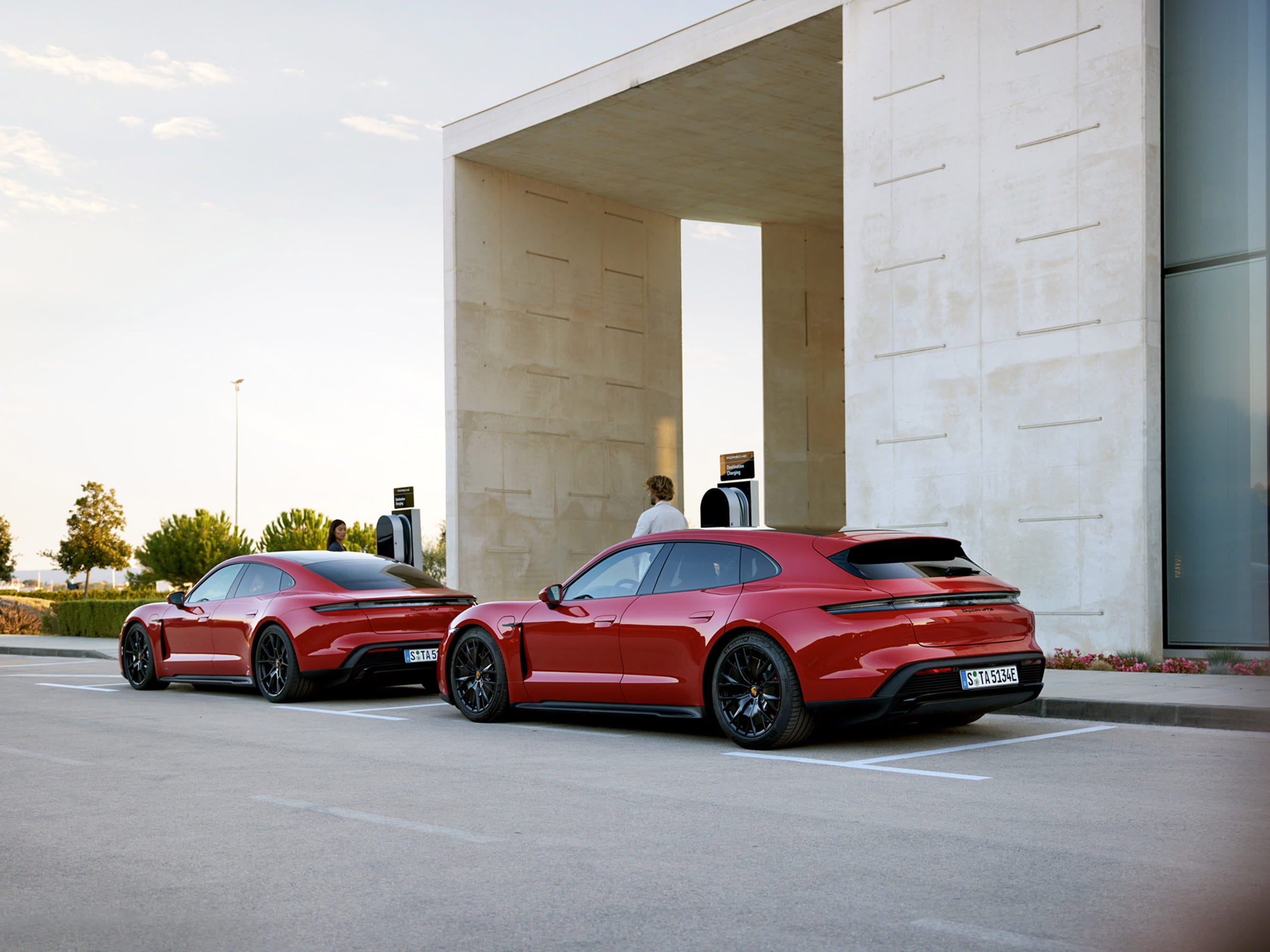 Z najnovejšo razširitvijo Taycanove modelske palete znova premikamo meje v svetu električnih športnih limuzin. Modela Taycan Turbo GT in Taycan Turbo GT s paketom Weissach sta zasnovana z mislijo na dirkalne steze. Oba športnika presegata magično mejo tisoč konjskih moči, z združitvijo inovativnih aerodinamičnih rešitev in lahko gradnjo pa postavljata nove standarde na področju vozne dinamike.