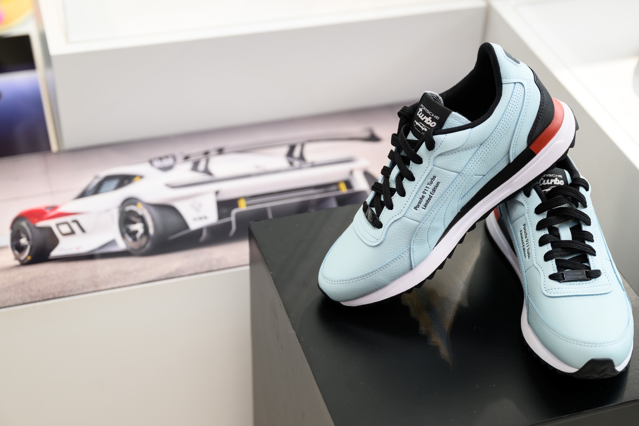 สตุ๊ทการ์ท, เยอรมนี– ปอร์เช่ฉลองครบรอบ 50 ปีของ 911 เทอร์โบด้วยไฮไลท์พิเศษส าหรับแฟนๆ ปอร์เช่ นั่นคือ ซีรีส์รองเท้าผ้าใบที่มีการออกแบบพิเศษเพียง 12 ดีไซน์ซึ่งผลิตจำนวนจำกัดเพียง 911 คู่ต่อดีไซน์คอลเล็คชั่นนี้เป็นการทำงานร่วมกับผู้ผลิตเสื้อผ้ากีฬารายใหญ่อย่างพูม่า (Puma) ซึ่งการออกแบบล้วนมี ความเชื่อมโยงทางประวัติศาสตร์กับรุ่นรถปอร์เช่ที่เป็นไอคอนิคและได้รับแรงบันดาลใจจากองค์ประกอบการออกแบบที่เป็นเอกลักษณ์จากรุ่นรถ 2 รุ่น คือ“Turbo No. 1” มีพื้นฐานมาจากรถปอร์เช่ที่เป็นตำนานซึ่ง มอบให้กับคุณหลุยส์ เพียช(Louise Piëch) ในวันเกิดปีที่ 70 ของเธอและ “Turbo 930” รถเทอร์โบของดร.เฟอร์รี่ ปอร์เช่ (Dr. Ferry Porsche) จากปี 1976