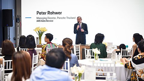 นอกจากนี้ มร. ปีเตอร์ โรห์เวอร์ กรรมการผู้จัดการปอร์เช่ ประเทศไทย กล่าวว่า “กิจกรรม Porsche Dining Experience นับเป็นอีกหนึ่งความตั้งใจในการสร้างประสบการณ์แห่งความสุขเหนือระดับให้กับลูกค้าเสมือนคำขอบคุณ ที่ท่านไว้ใจเลือก เอเอเอสฯ ให้ดูเเลรถยนต์ปอร์เช่คันโปรด ในอนาคตข้างหน้า เอเอเอสฯ จะยังคงเดินหน้าสร้างความประทับใจ เพื่อให้ลูกค้าทุกท่านได้รับสุนทรียภาพ ทั้งในการขับขี่รถยนต์ปอร์เช่และในด้านอื่นๆ ของการใช้ชีวิตตามนโยบายของบริษัทที่ เรานั้นดูเเลทั้งรถเเละคุณ”